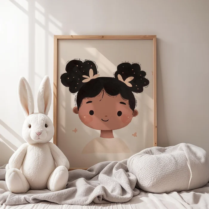 Ürün: İki Topuzlu Sevimli Kız Çocuğu Çocuk Odası Ahşap Duvar Tablosu