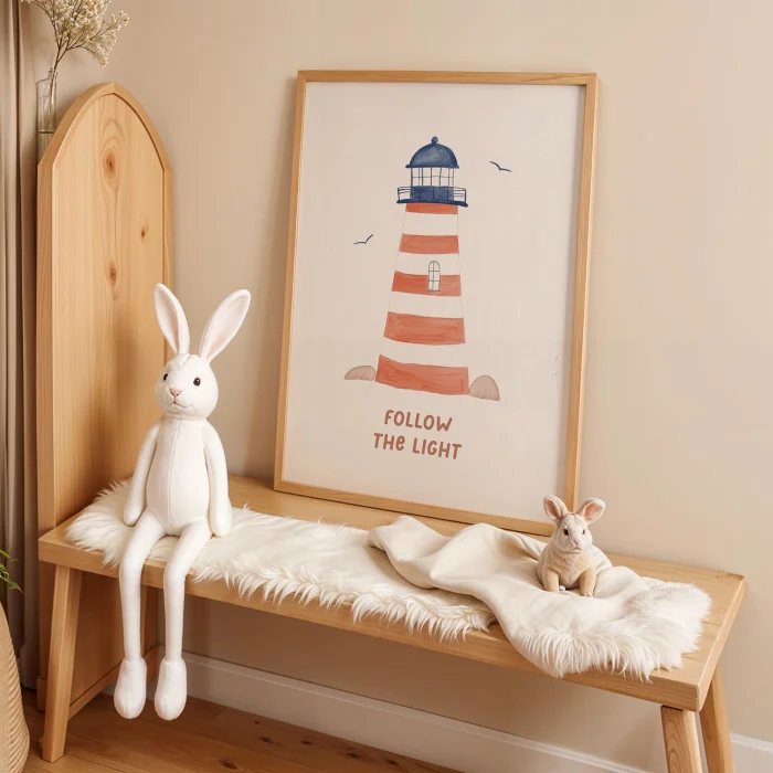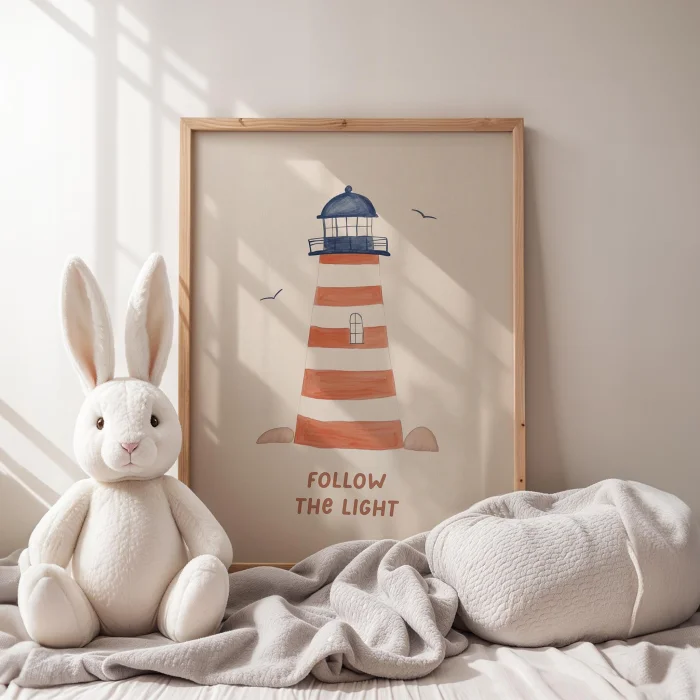 Ürün: Işığı Takip Et Deniz Feneri Çocuk Odası Ahşap Duvar Tablosu