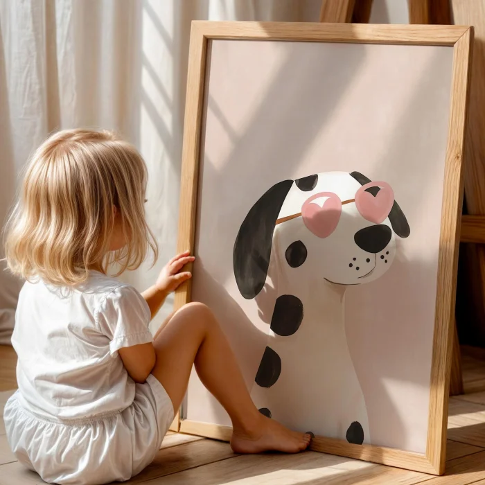 Ürün: Kalpli Gözlüklü Köpek Bohem Kız Çocuk Odası Ahşap Tablo