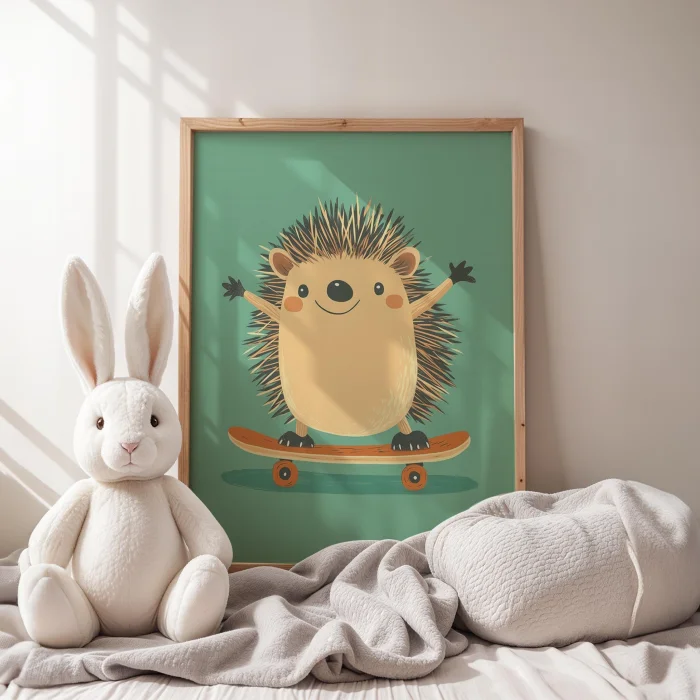 Ürün: Kaykaycı Kirpi - Çocuk Odası Ahşap Duvar Tablosu
