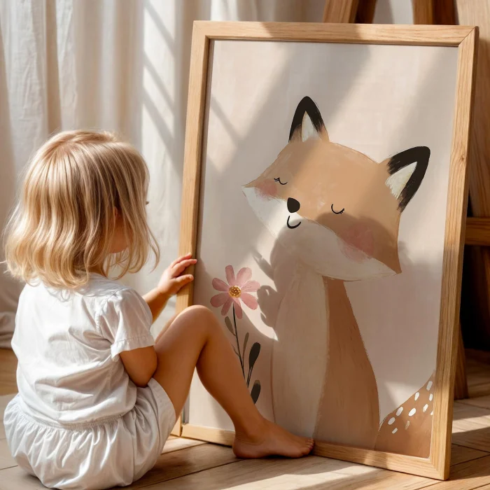 Ürün: Mutlu Çiçekli Tilki Bohem Kız Çocuk Odası Ahşap Tablo