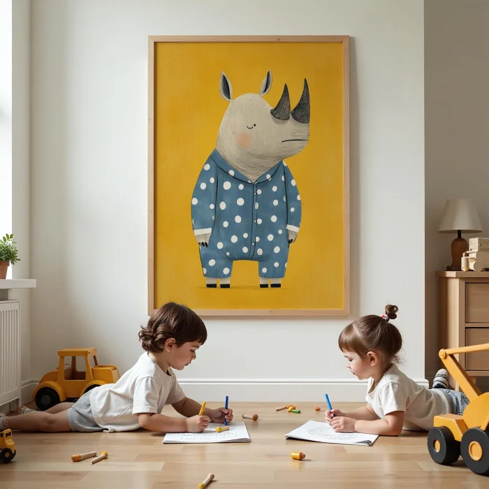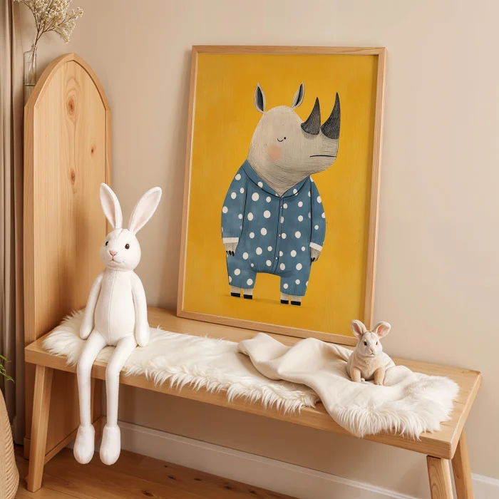 Ürün: Pijamalı Sleeper Gergedan - Çocuk Odası Ahşap Duvar Tablosu