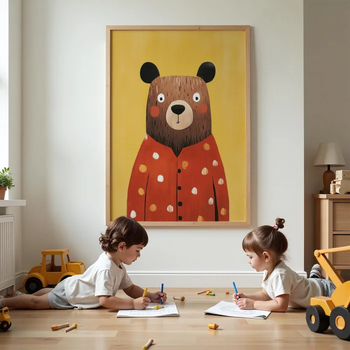 Ürün: Pijamalı Sleeper Şaşkın Ayı - Çocuk Odası Ahşap Duvar Tablosu