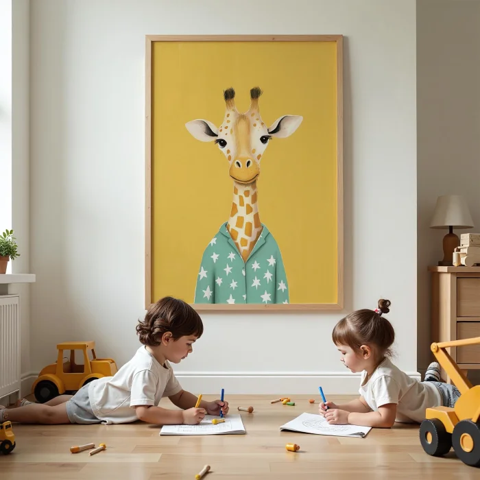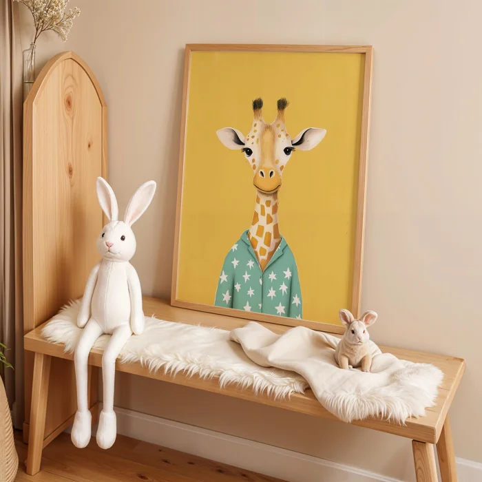 Ürün: Pijamalı Sleeper Zürafa - Çocuk Odası Ahşap Duvar Tablosu