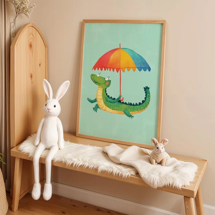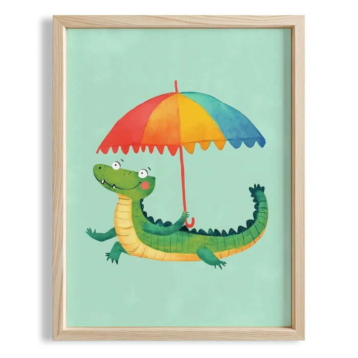 Ürün: Şemsiyeli Timsah - Çocuk Odası Ahşap Duvar Tablosu