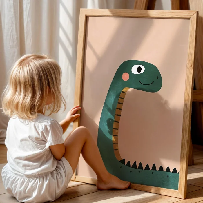 Ürün: Sevimli Gülen Dinozor Temalı Çocuk Odası Ahşap Tablo I