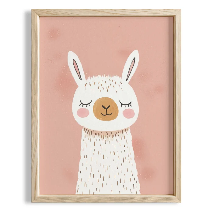Ürün: Sevimli Lama Alpaka Boho Kız Çocuk Odası Ahşap Çerçeveli Tablo