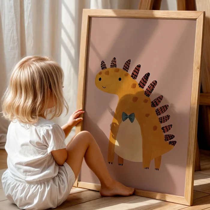 Ürün: Sevimli Papyonlu Dinozor Temalı Çocuk Odası Ahşap Tablo