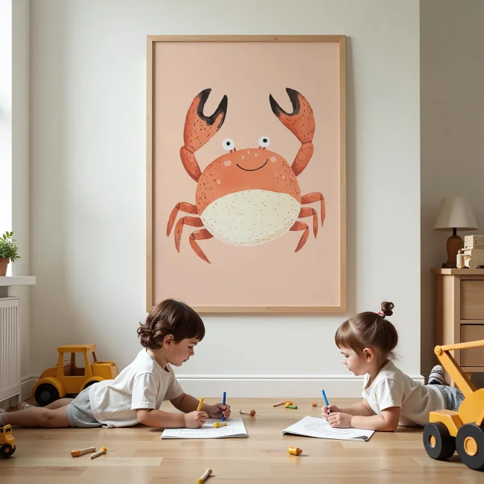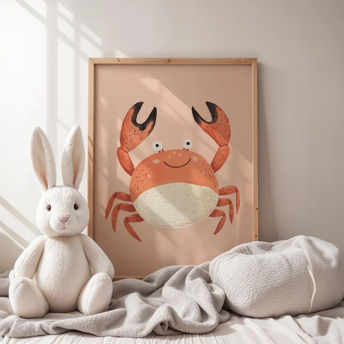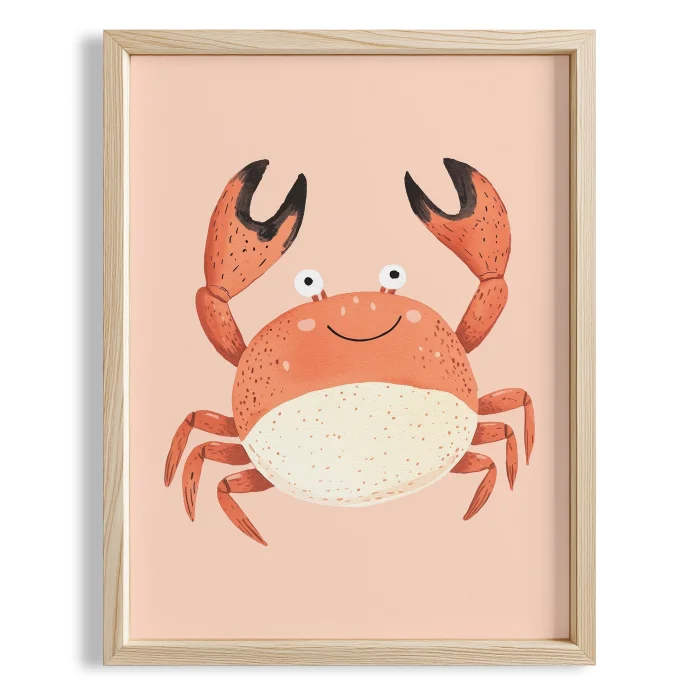 Ürün: Sevimli Yengeç İllüstrasyonu Çocuk Odası Ahşap Duvar Tablosu