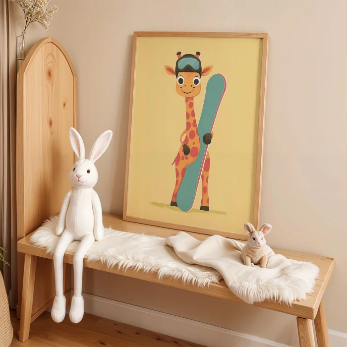 Ürün: Snowboardcu Zürafa Ii - Çocuk Odası Ahşap Duvar Tablosu