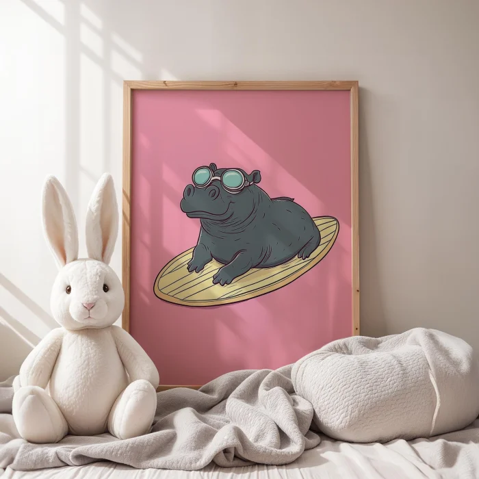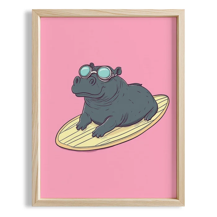 Ürün: Sörfçü Su Aygırı - Çocuk Odası Ahşap Duvar Tablosu