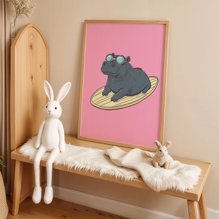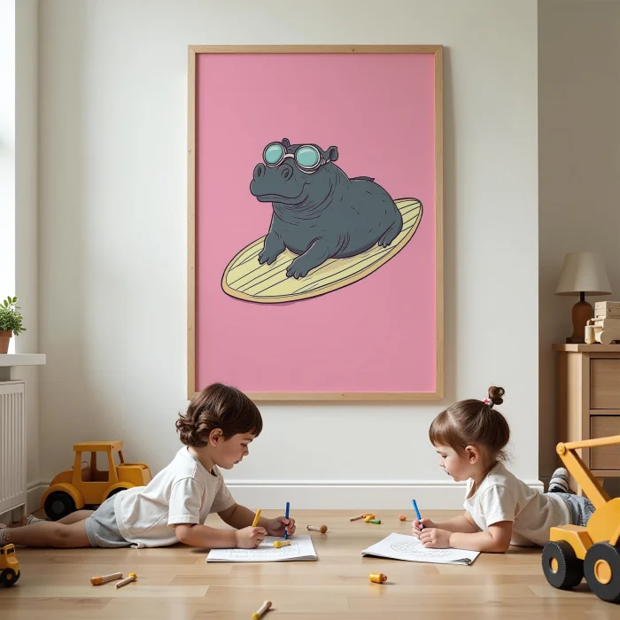 Ürün: Sörfçü Su Aygırı - Çocuk Odası Ahşap Duvar Tablosu
