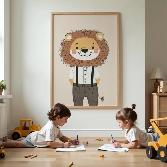 Ürün: Tulum Giyen Aslan Çocuk Odası Ahşap Duvar Tablosu