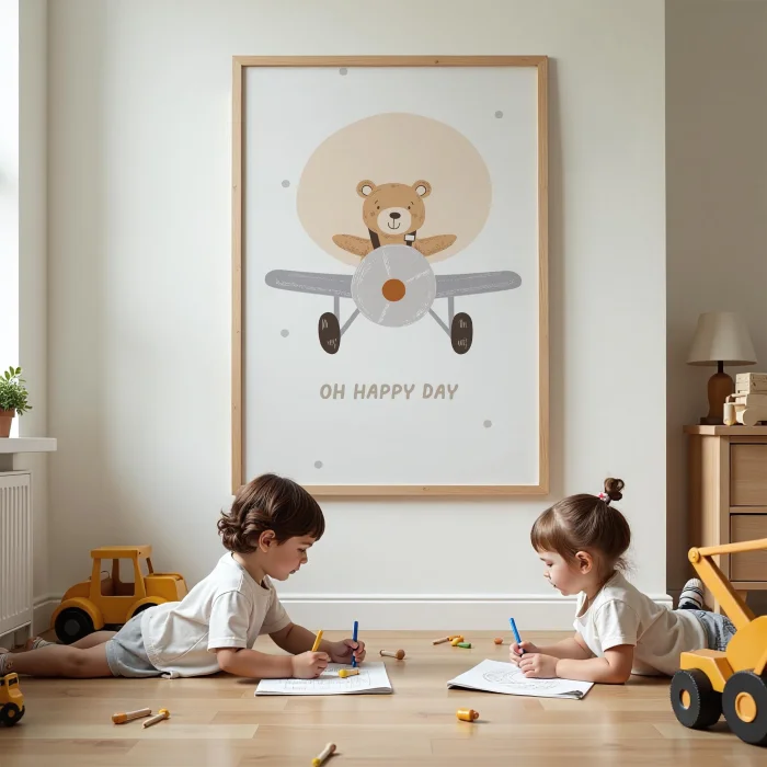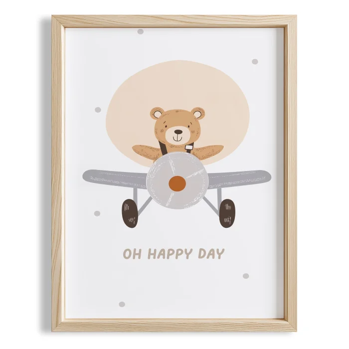 Ürün: Uçak Süren Pilot Ayıcık Çocuk Odası Ahşap Duvar Tablosu