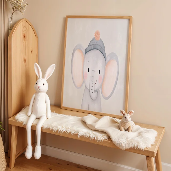 Ürün: Uykucu Sevimli Fil Çocuk Odası Ahşap Duvar Tablosu