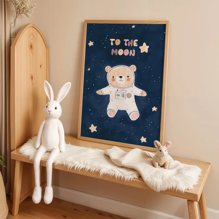 Ürün: Uzay Temalı Astronot Ayıcık Çocuk Odası Ahşap Duvar Tablosu