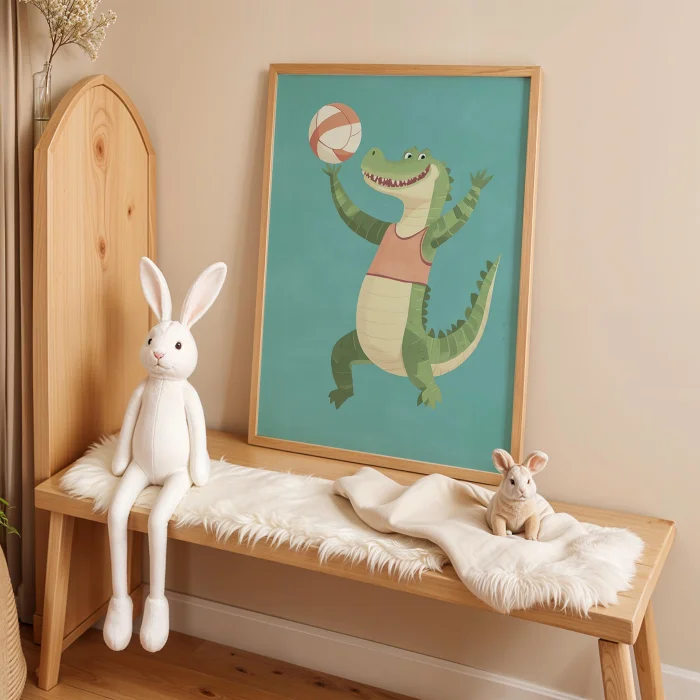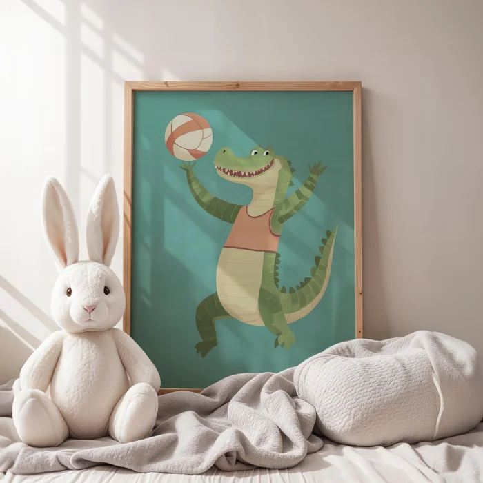 Ürün: Voleybolcu Timsah - Çocuk Odası Ahşap Duvar Tablosu