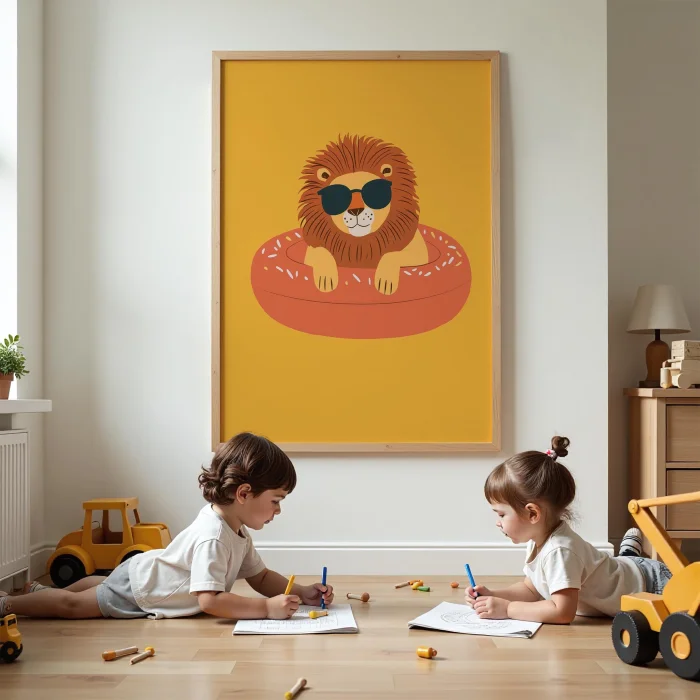 Ürün: Yüzen Aslan - Çocuk Odası Ahşap Duvar Tablosu