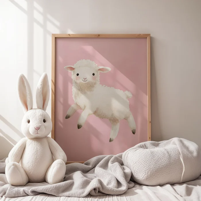 Ürün: Zıplayan Mutlu Kuzu - Çocuk Odası Ahşap Duvar Tablosu