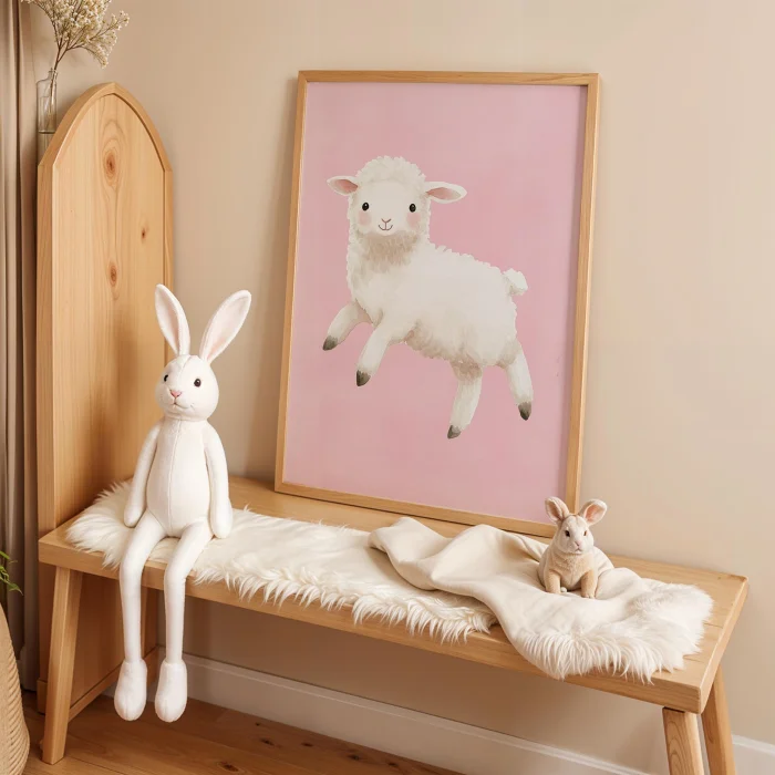Ürün: Zıplayan Mutlu Kuzu - Çocuk Odası Ahşap Duvar Tablosu