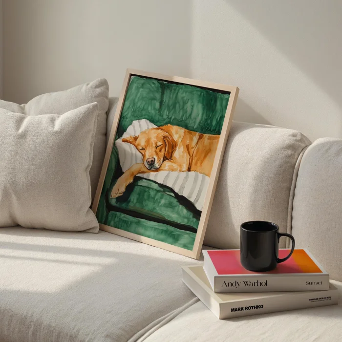 Ürün: Köpek Portre Golden Retriever Ahşap Çerçeveli Tablo