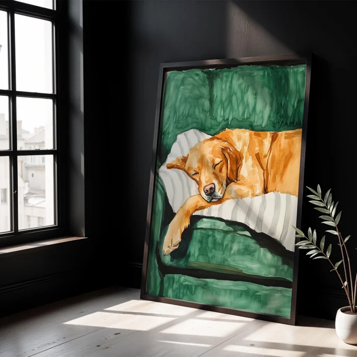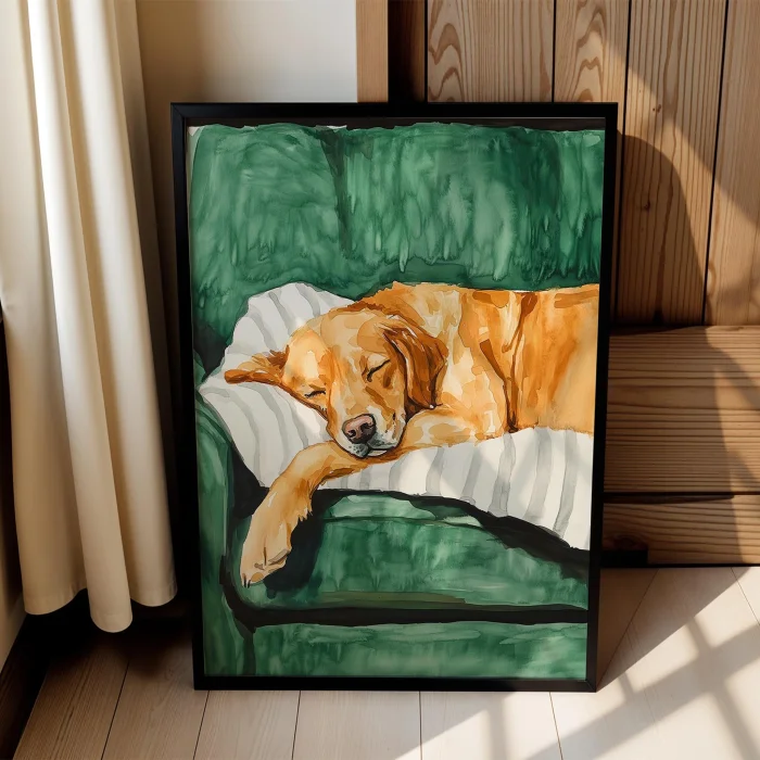 Ürün: Köpek Portre Golden Retriever Ahşap Çerçeveli Tablo