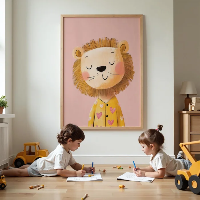 Ürün: Pijamalı Uykucu Kaplan - Fon Doğal Ahşap Çerçeveli Tablo