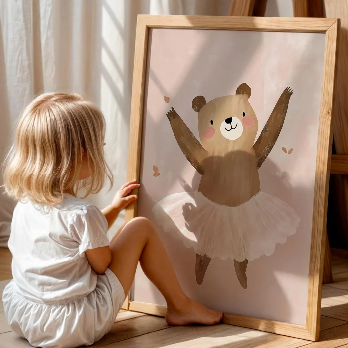 Ürün: Sevimli Balerin Ayıcık Fonlu Kız Çocuk Odası Ahşap Tablo Ii