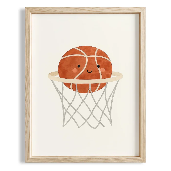 Ürün: Sevimli Basketbol Topu Ve Fileler Erkek Çocuk Odası Ahşap Tablo