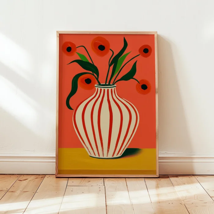 Ürün: Vazo Ve Çiçekler Gelincikler Ahşap Çerçeveli Tablo