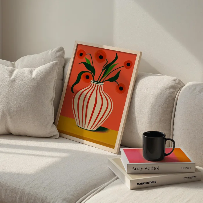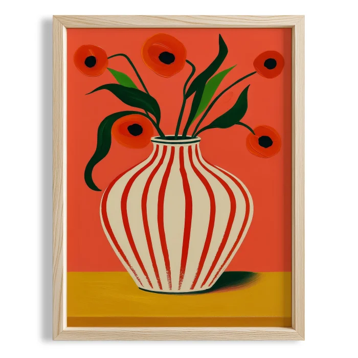 Ürün: Vazo Ve Çiçekler Gelincikler Ahşap Çerçeveli Tablo