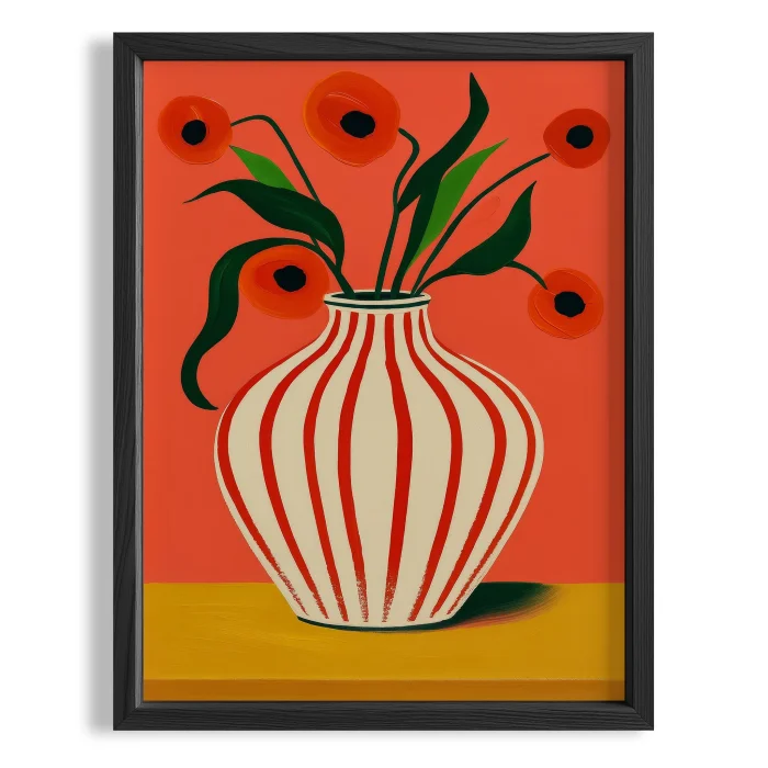 Ürün: Vazo Ve Çiçekler Gelincikler Ahşap Çerçeveli Tablo