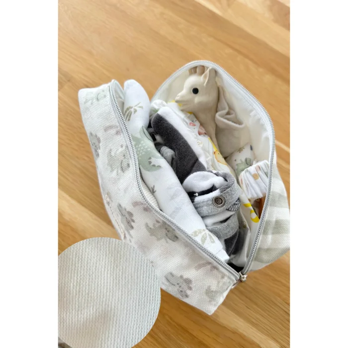 GOTS sertifikalı %100 Organik Pamuk kumaşlarla hazırladığımız Sıvı Geçirmez Bakım Çantalarımız ister bebeklerin ister annelerin kişisel ihtiyaçlarını pratik bir şekilde taşıyacağı şekilde tasarlanmıştır. •Dışı organik pamuk kumaştan hazırlanan çantanın içi sıvı geçirmez kumaşla astarlanmıştır. İç bölümünde 2 adet pratik cep bulunur. •Yumuşak dokusuyla içi dolu bile olsa büyük çanta içinde istediğiniz formda saklanabilir. •Bebek ihtiyaçları, yedek kıyafet, oyuncak, makyaj, seyahat çantası olarak kullanılabilir. •En:22cm Boy:16 Genişlik:7 cm'dir. Dış kumaşı %100 organik pamuk dokuma kumaştır. İç astarı mikro sıvı geçirmez kumaştır. Üründe ilk yıkama ile beraber pamuklanma görülmesi normaldir. Kullanım ve yıkama sonrası oluşabilecek renk solması kumaşın doğasından kaynaklıdır. 30 °C’ye kadar makinedetek başına yıkanabilir. Elle çitilenmez. Bebekler için uygun içerikli, GOTS sertifikalı iplik ve boya malzemelerinden üretilmiştir. Benzer Ürünler ‹›
