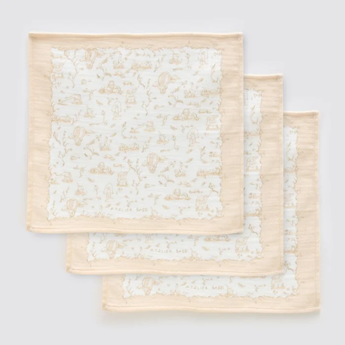 Set İçeriği: 3 adet müslin ağız bezi Malzeme: Pamuk Kumaş Türü: Müslin Boya: GOTS Sertifikalı Boya Ölçü: 30x30 cm
