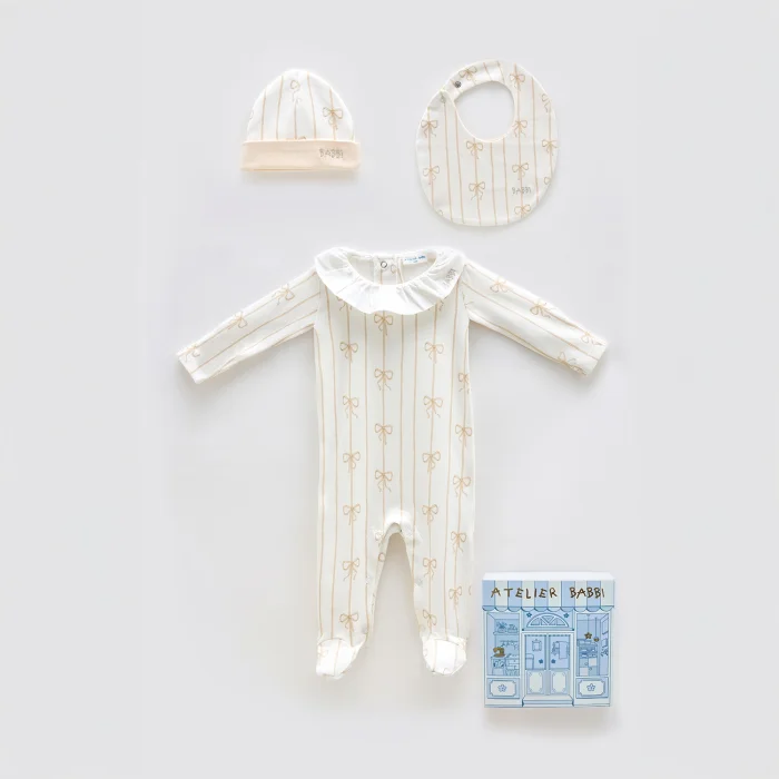 Set içeriği şu şekildedir; Tulum (0-3 ay) Yenidoğan Şapka Yenidoğan Önlük Ürün Özellikleri: Malzeme: %100 Pamuk Kumaş Türü: İnterlok Boya: GOTS Sertifikalı Boya