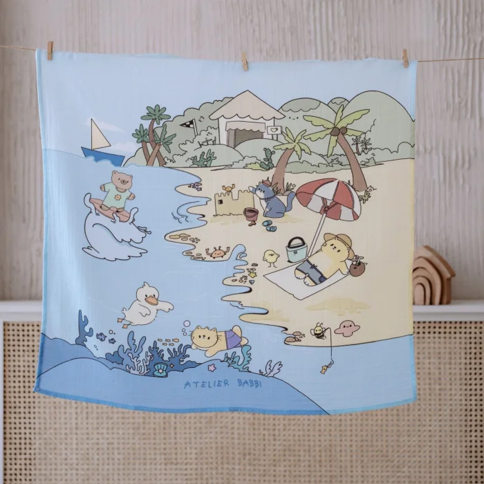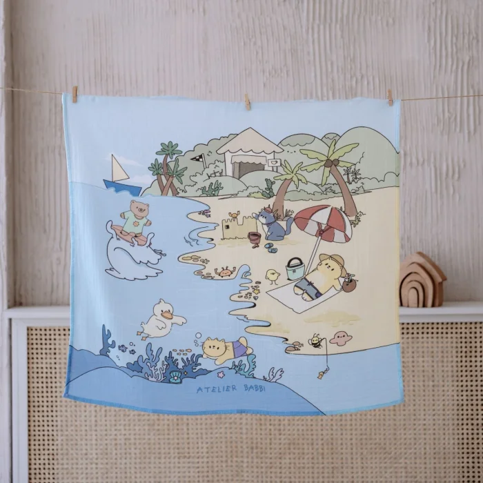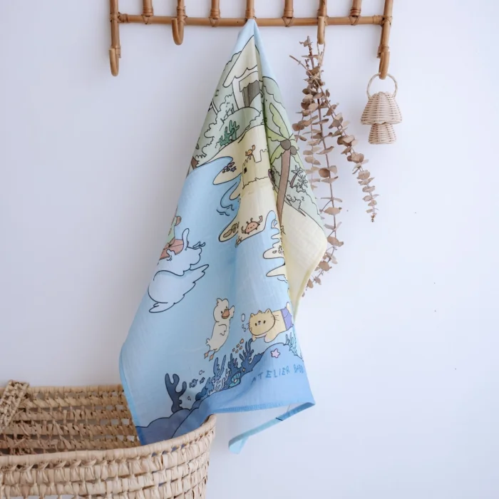 Ürün Özellikleri: Malzeme: Pamuk Kumaş Türü: Müslin Boya: GOTS Sertifikalı Boya Ölçüler: 70x70 cm, 100x100 cm