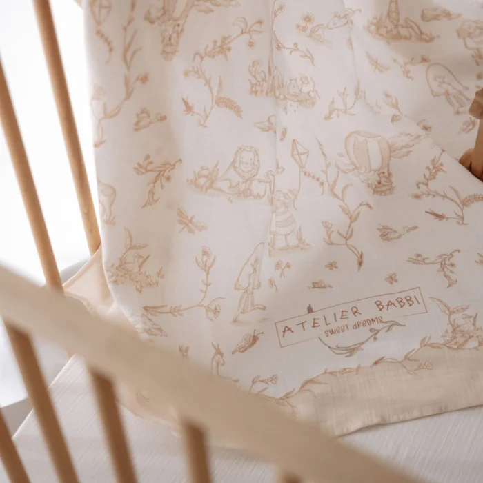 Ürün Özellikleri: Malzeme: Pamuk Kumaş Türü: Müslin Boya: GOTS Sertifikalı Boya Ölçüler: 70x70 cm, 100x100 cm