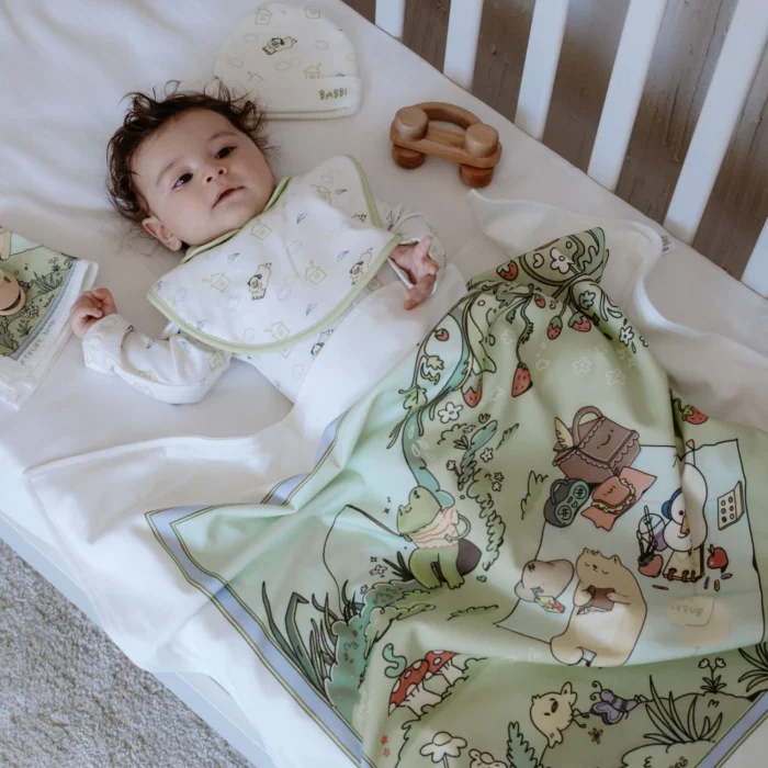 Ürün Özellikleri: Malzeme: Pamuk Kumaş Türü: İnterlok Boya: GOTS Sertifikalı Boya Ölçü: 80x80 cm