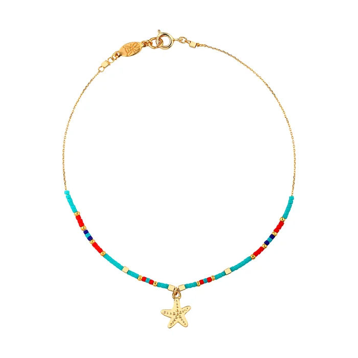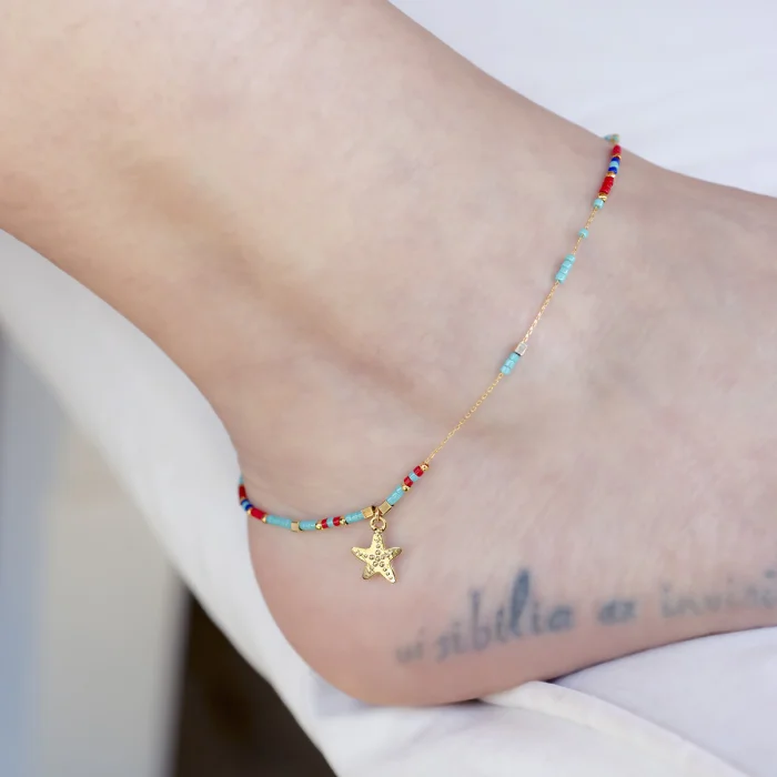 Pirinç Üzerine Altın Kaplama İnce Zincir Ve Miyuki Boncukları Kullanılarak Tasarlanmış Deniz Yıldızı Detaylı Halhalın Uzunluğu 21 Cm Olup 2 Cm Uzatma Zinciri Bulunmaktadır.