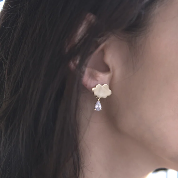 Pirinç Üzerine Altın Kaplama Zirkon Taşlı Minik Bulut Formlu Sallantılı Küpe.