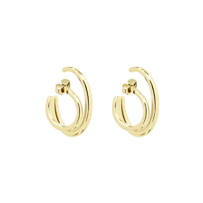 Pirinç üzerine altın kaplama amorf şekilli halka küpenin uzunluğu 2.7 cm'dir.
