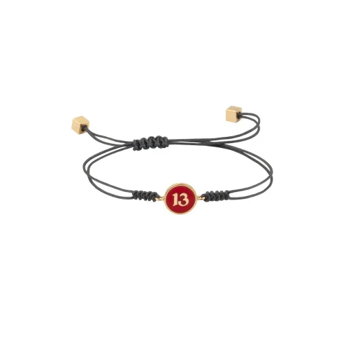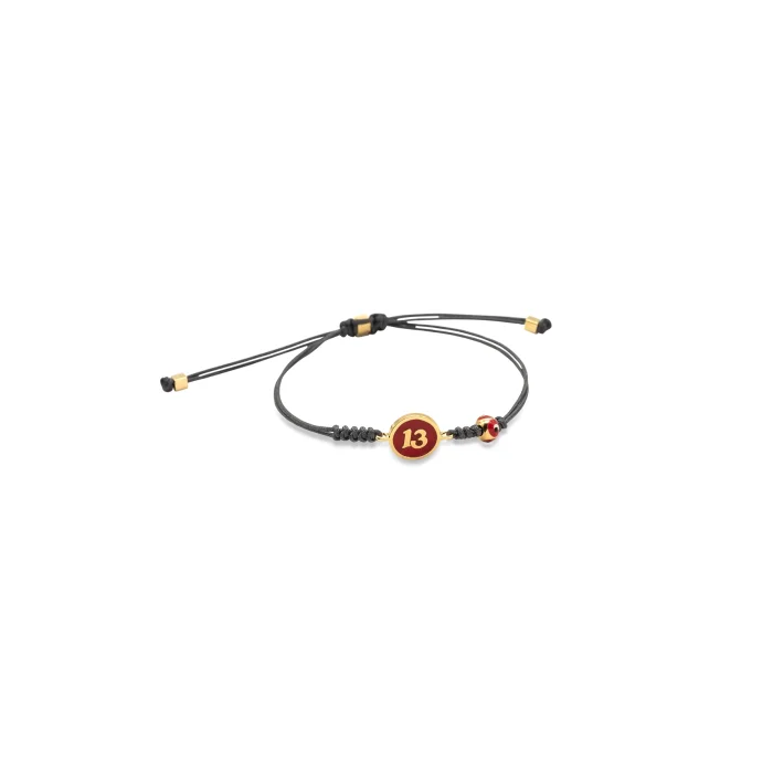Pirinç Üzerine Altın Kaplama Kırmızı Mine Kullanılarak Renklendirilmiş 13 Sayılı Uğur Bilekliğinin Ölçüsü 14-22 Cm Arasında Ayarlanabilmektedir.