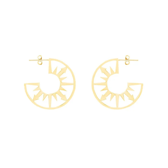 Pirinç Üzerine Altın Kaplama Güneş Saati Formunda Halka Küpenin Çapı 3 cm'dir.