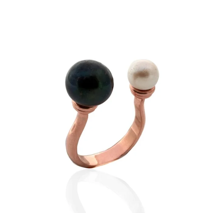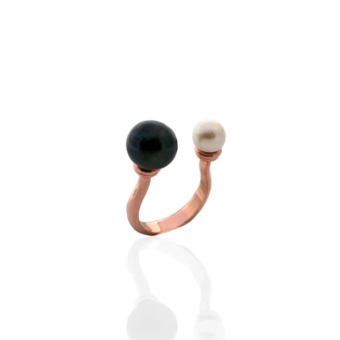 Pirinç üzerine pembe altın kaplama tatlısu incileriyle tasarlanmış yüzük her ölçüye göre ayarlanabilmektedir.