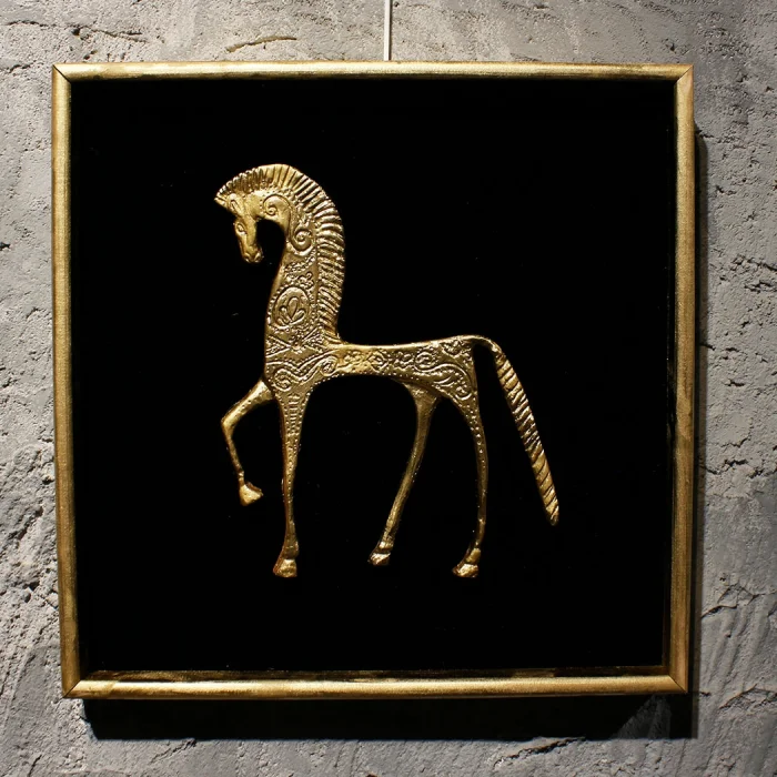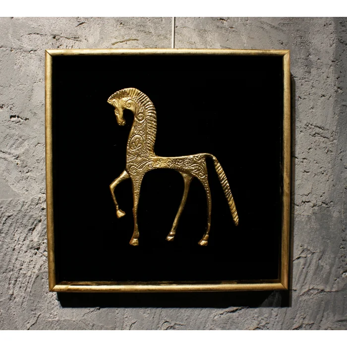 Hitit atı rölyef tablo, Hitit Uygarlığı sembollerinden ilhamla ürettiğimiz bir rölyef tablodur. Ürünümüz el yapımı döküm kabartma tekniği ile üretilmiştir.. Ahşap renklendirilmiş cilalı çerçevelidir. Çerçeve arkasında askı aparatı mevcuttur. El yapımı olarak üretildiği ve doğal malzeme kullanıldığı için, ahşap ürünlerde ve rölyeflerde doku ve ton farkı olabilir. Ürün: Hitit Atı Rölyef Tablo