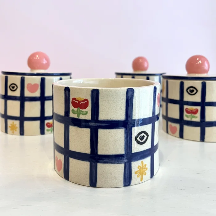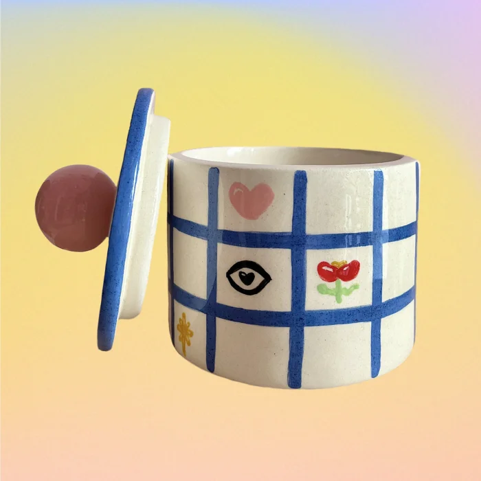 Tamamı el yapımı, kapaklı seramik kutu.
