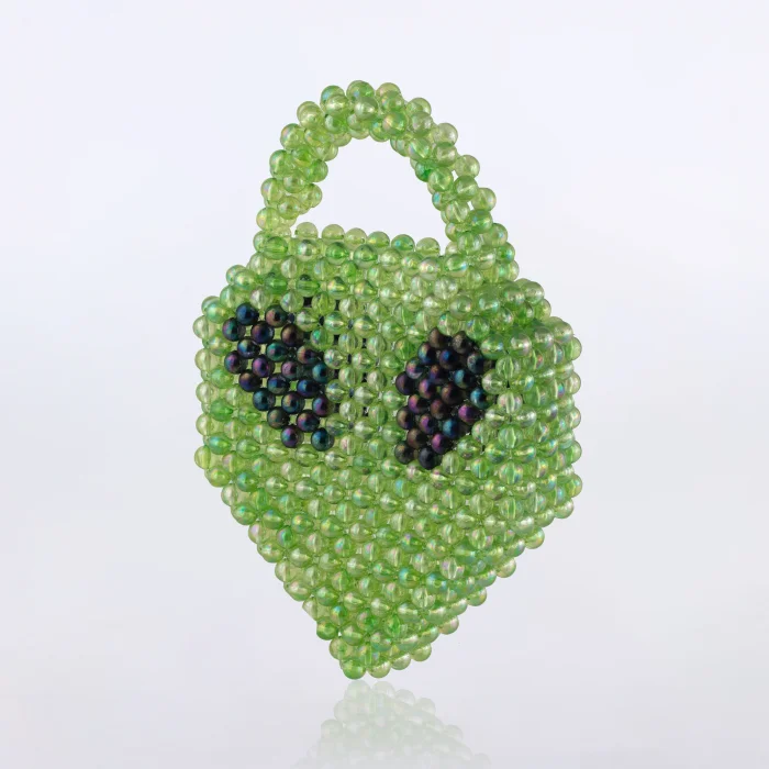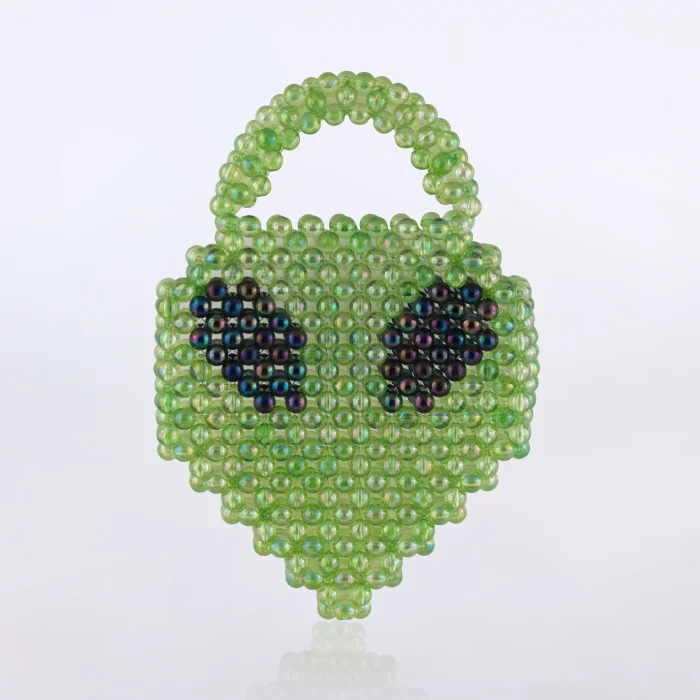 Mini uzaylı el çantası. Milimetrik boncukların 25+kg direnç kapasiteli misinayla örülmesiyle üretilmiştir.