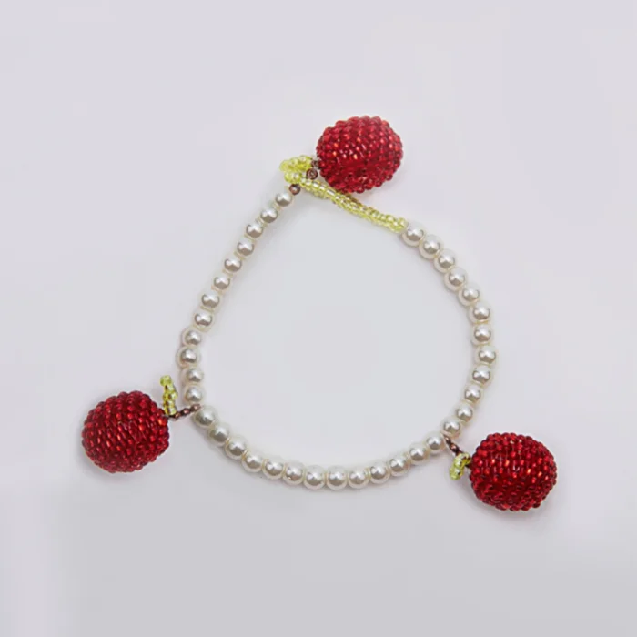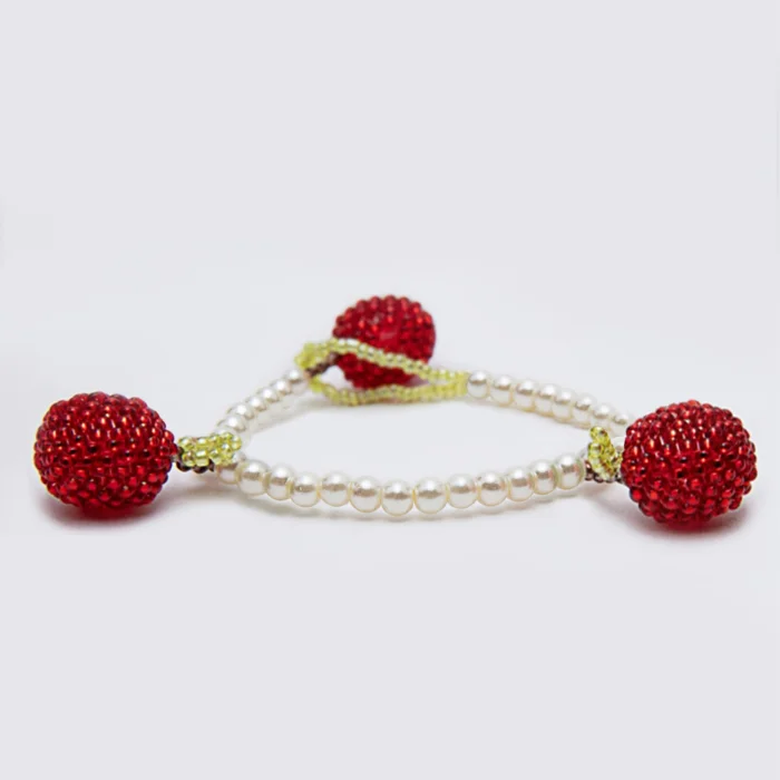 Milimetrik cam kum boncukların uzun saatler boyu misina ile örülmesi ile meydana getirilmiştir. Özel tasarım, El yapımı.