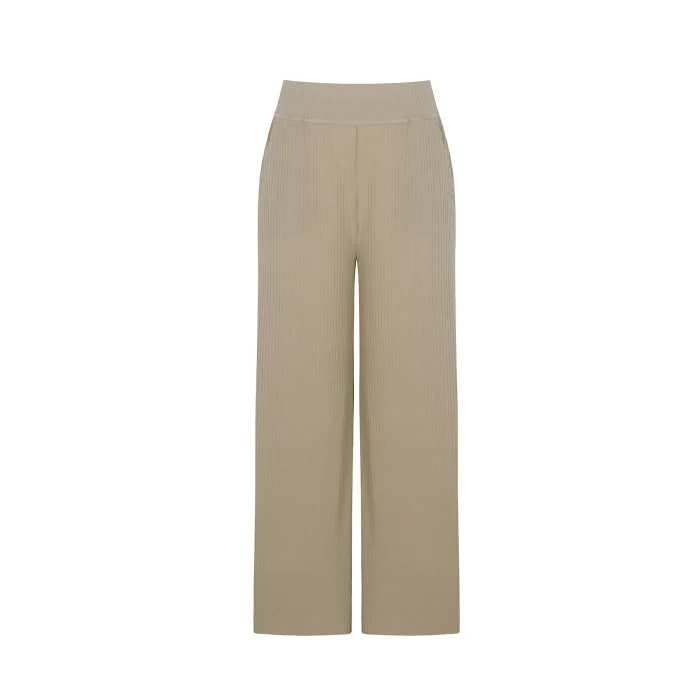 AYJE Ultra Comfort geniş paça pantalon, ultra yumuşak yapısı sayesinde gün boyu rahat bir kullanım sunuyor. Lastik detayı ve bol paça tasarımı, sade bir şıklığı simgeliyor.