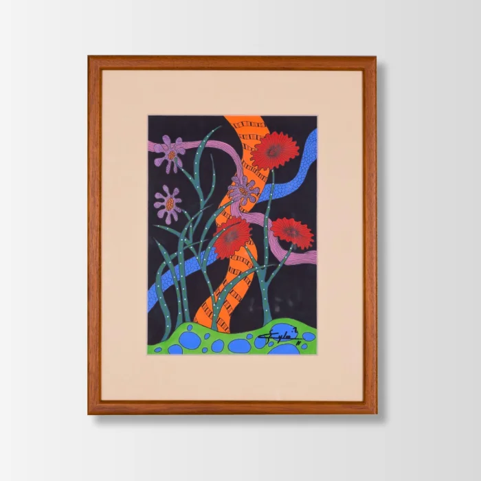 Kağıt üzerine akrilik boya fırça tekniği ile uygulanmıştır.